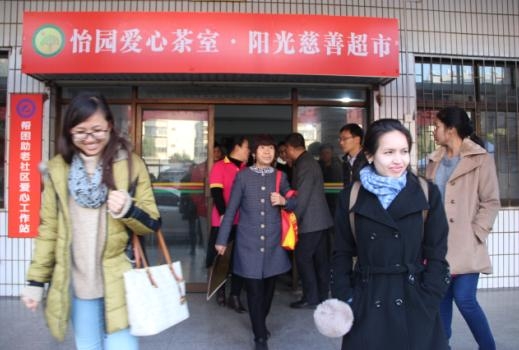 研修团参观了铁路怡园小区社区爱心工作站、社区电子阅览室、慈善超市等常设项目。当天正值中国农历冬至节气之日,工作站和居民志愿者正在组织社区老龄人的生日聚会、眼科检查、健康义诊、关爱理发、保健按摩和发放预防老龄人走失爱心黄手环等活动,社区居民也正在自发组织冬至歌舞会。柬埔寨客人饶有兴致地观看了演出,并向当天过生日的老人赠送了礼物。