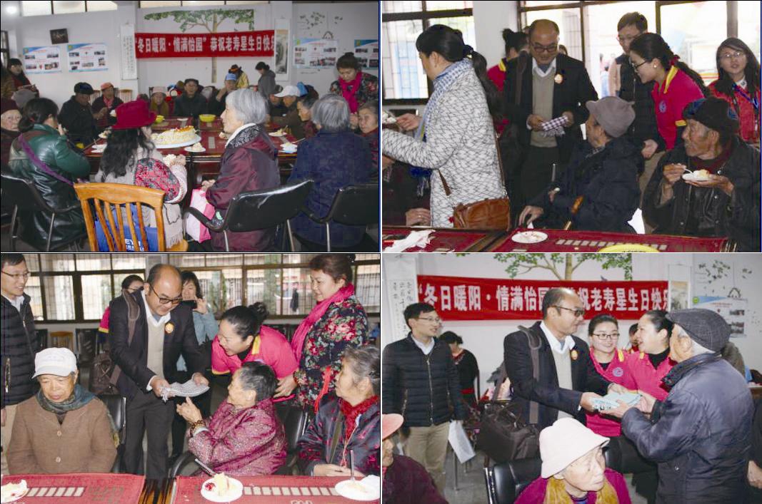 柬埔寨劳工与职业培训部得成功(TES Rukhaphal)代表柬埔寨客人向4位社区高龄老寿星杨凤仙(85岁)、赵文光(82岁)、缪加海(84岁)和张伯麟(96岁)赠送礼物。