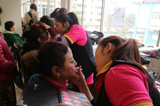 在新春到来之际,云南省物业管理行业协会与华兴物业有限公司在金安小区举办了一场大型文艺联欢会。本次活动包括文艺表演、中国人口福利基金会爱心黄手环发送、爱心眼科检查、爱心义诊、科普资料宣传等。活动开始前由我会副会长丁丽萍女士致开场词,为了更好的达到活动效果,在活动开始前,我会组织志愿者们为表演者提供免费化妆,现场气氛其乐融融。