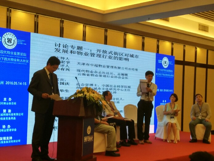 2016年5月14日现代物业发展论坛“多元业态下的大物业和大社区”正式拉开帷幕。担任此次论坛主持的是现代物业杂志专栏主持,物业管理资深专家陆华生先生。主持人介绍嘉宾,介绍议程规则。