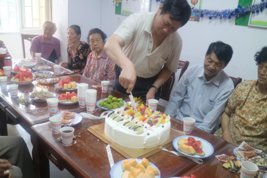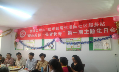 情满云岭3+1助老睦居生活圈社区服务站 暖心陪伴长者长寿第一期主题生日会 2016年7月26日下午,云南省物业管理行业协会在盘龙区联盟街道长寿路社区服务站为近期过生日的老年人举办