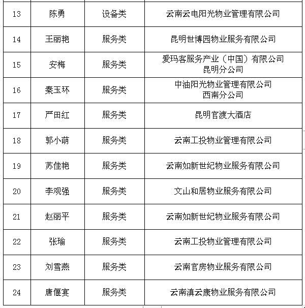 由云南省物业管理行业协会联合媒体等单位发起的省物协优秀会员集体和个人评选活动,近日评出结果,其中优秀集体项目14个,先进个人24名(含班组1个)。现将结果公示如下。