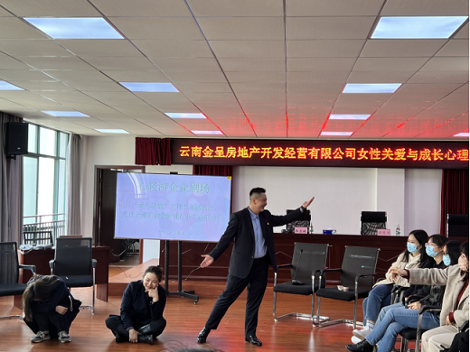 在第113个三八国际妇女节来临之际,2023年3月7日,云南省物业管理行业工会联合会以“以春为始,向美而行”为主题,联合云南金呈房地产开发经营有限公司、云南金呈物业服务有限公司开展三八妇女节主题关爱活动,通过主题心理团辅,关心关爱女职工,为她们送去“娘家人”的节日问候和祝福,激发广大女职工立足岗位作贡献、巾帼建功展风采的热情和动力。云南金呈房地产开发经营有限公司党委书记、工会主席朱吉诚为现场全体女职工送上节日问候,同时对女职工在物业建设与发展中的努力与付出给予赞美和肯定。